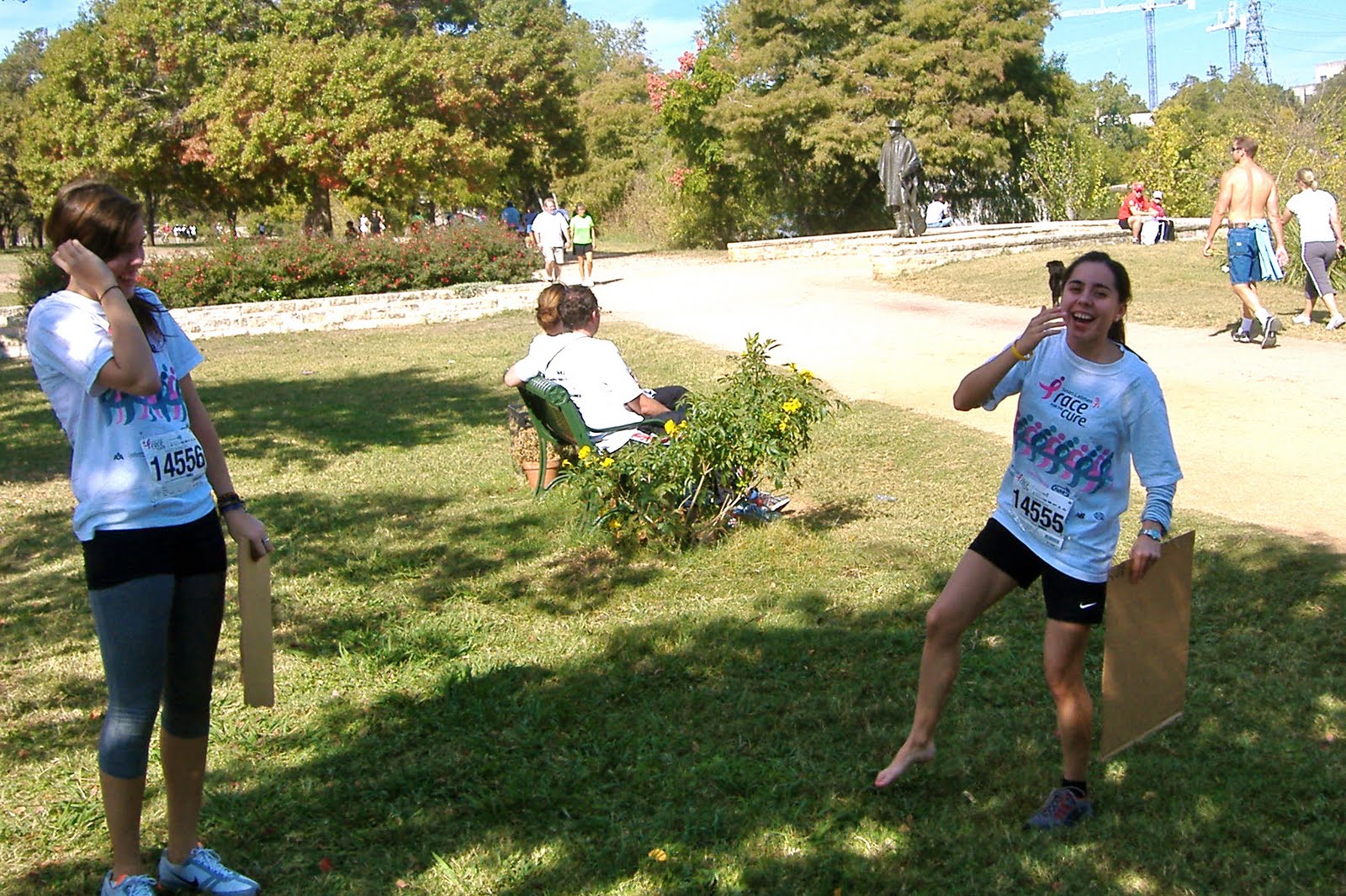 Y bien, no hay mejor recomendación que disfrutar el momento. Los momentos presentes y los que hacen que sean felices nuestros trotes. En la foto abajo me encuentro terminando una carrera, que no pude terminar corriendo por una lesión. Me estaba quitando el zapato de tanto que me dolía y sin querer pisé la popó de un perro. Yuk. Pero a fin de cuentas fueron buenas carcajadas.