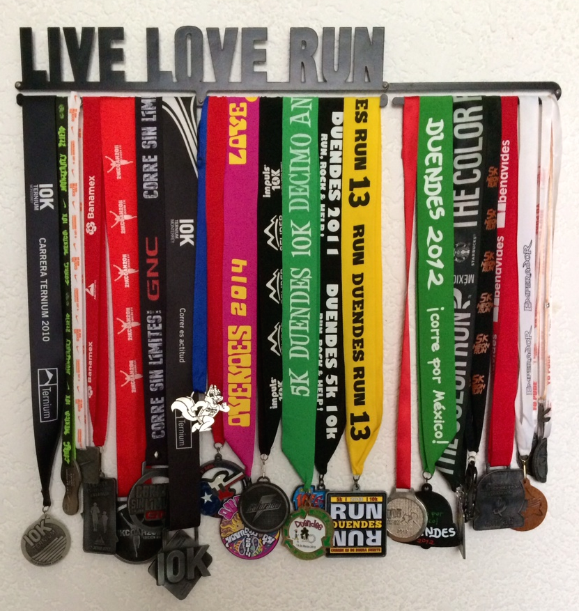 Hace unos meses compré un medallero para colgar en mi cuarto. Hoy por fin ya lo tengo instalado en mi pared y mi primer reacción fue, no sabía que tenía tantas hasta que las vi todas juntas. La mayoría son carreras de 5 y 10k. Algunas repetidas de varios años consecutivos. Y una muy especial entre ellas, mi medalla de 21K.